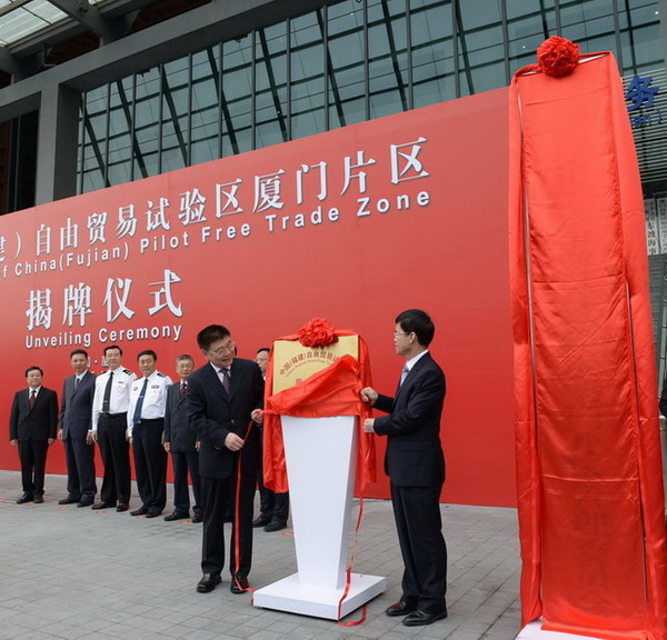 中國(guó)(福建)自由貿(mào)易試驗(yàn)區(qū)廈門片區(qū)在兩岸貿(mào)易中心舉行揭牌儀式