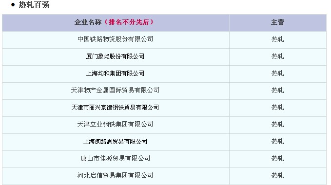 鏈接《熱軋百強排行榜》