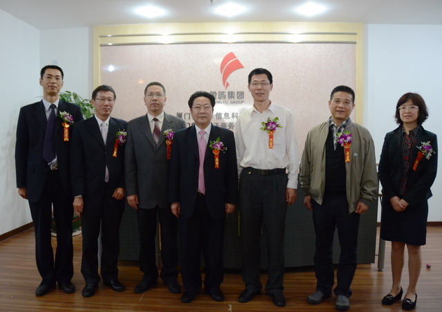廈門(mén)市軟件園管理委員會(huì)辦公室常務(wù)副主任李永福、中國(guó)銀聯(lián)廈門(mén)分公司副總經(jīng)理王中和象嶼集團(tuán)總裁助理廖世澤、象嶼電子商務(wù)公司總經(jīng)理林立一起為公司揭牌
