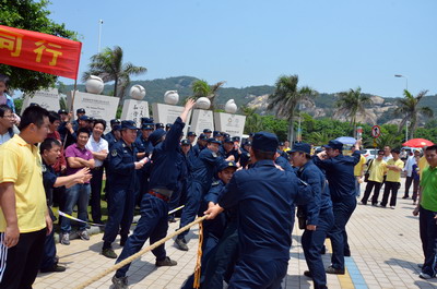 陽光明媚、海浪輕拍,大雨洗滌過的海濱分外清新。員工和官兵代表們絡繹不絕、配合默契撿拾木棧道沿途垃圾,志愿者紅色馬甲與海軍藍色制服錯落分布,構成海灘一道獨特亮麗的風景線。員工子女們也顧不得滿頭大汗,興沖沖地撿起被海水沖上岸的雜物,用心體會著環(huán)保的理念和勞動的快樂。音樂廣場上的拔河比賽和趣味游戲將現(xiàn)場氣氛推向高潮。來自集團和海軍南方局的16支代表隊奮力拼搏,拉拉隊員激情吶喊,充分展現(xiàn)了廣大員工和現(xiàn)代軍人團結拼搏的精神風貌。經過激烈角逐,象嶼碼頭、海軍南方局代表隊拔得頭籌,分獲甲、乙組冠軍。由貿易、建設、速傳、資產四家工會精心準備的趣味游戲吸引了眾多員工及家屬參與,“龍鳳戲珠”、“呼啦行進”、“勇闖長繩”、“向快樂出發(fā)”等環(huán)節(jié)異彩紛呈,歡呼聲、叫好聲,高潮迭起。