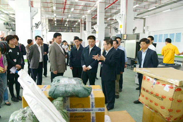 調(diào)研現(xiàn)場,王蒙徽書記等市領導聽取了王龍雛董事長、陳方副總裁對廈門跨境電商產(chǎn)業(yè)園情況的介紹,察看了作業(yè)現(xiàn)場。王書記在調(diào)研過程中對象嶼集團在自貿(mào)試驗區(qū)推動過程中邊摸索、邊推動,敢于先行先試,開拓海運快件物流新通路,構(gòu)建廈門跨境電商產(chǎn)業(yè)園的新思維、新模式給予了肯定,對海關、國檢給予的鼎力合作支持表示感謝。