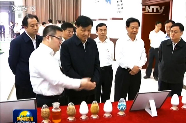 在糧食生產(chǎn)收購倉儲區(qū),就劉云山關心的倉容規(guī)模、倉庫類型、糧食品種、千噸囤的材料和保糧效果等,陳方一一向劉云山進行了匯報。他說該項目園區(qū)倉容規(guī)模為500萬噸,有835個千噸囤及108棟平板倉,服務周邊半徑150公里約8萬戶農(nóng)民,很好地解決了農(nóng)民 “賣糧難”問題,該項目規(guī)模據(jù)考量為世界最大單體糧庫,正在申請吉尼斯世界紀錄。倉庫現(xiàn)儲糧346.5萬噸,其中140多萬噸水稻,200多萬噸玉米;千噸囤外部是鋼結構,內(nèi)部用葦徑制作,不會變形,防水防潮保糧效果好。在象嶼生化玉米深加工產(chǎn)業(yè)區(qū),各生產(chǎn)車間已建成,設備也已安裝到位,配套的自備熱電聯(lián)產(chǎn)區(qū)高大的煙筒徐徐冒出縷縷白煙。劉云山很認真地詢問熱電廠建設手續(xù)是否已辦理,電廠的規(guī)模是否夠用?陳方回答說“發(fā)電廠的建設完全按照國家相關規(guī)定報批,手續(xù)齊全,2臺150噸的鍋爐可提供3萬千瓦時的用電,能夠保證項目的正常使用。”當劉云山聽到陳方介紹說該項目一期60萬噸玉米深加工項目按照常規(guī)建設,工期需要18個月才能完成,而象嶼以超常規(guī)的速度僅僅用了不到9個月的時間便實現(xiàn)了在本月下旬試車投產(chǎn)的目標。他很開心地連稱“好、好!”并詢問:玉米深加工的產(chǎn)品都有什么?陳方告訴劉云山說:“主要產(chǎn)品包括有淀粉、淀粉糖、酒精、發(fā)酵產(chǎn)品、變性淀粉等五大品種。項目全部達產(chǎn)后預計可實現(xiàn)年產(chǎn)值 60億元,利稅6億元,安置就業(yè)2000人。”聽罷,劉云山又是連聲稱好。